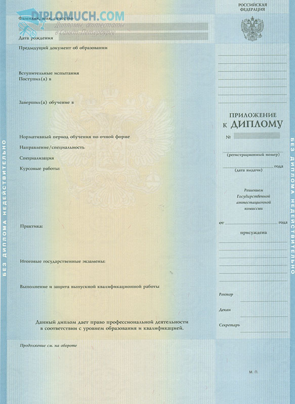 • Комплект: Диплом + твёрдая обложка + приложение;